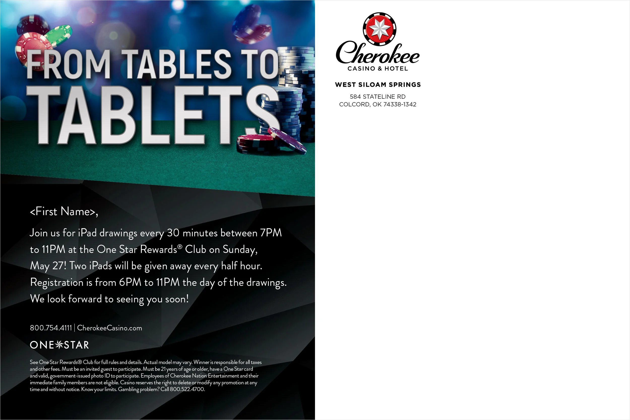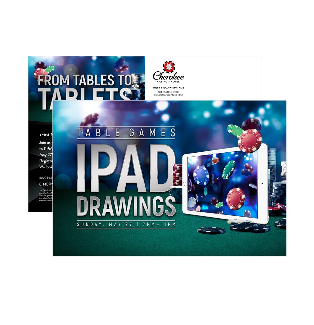 Invitation designed for Cherokee Casino West Siloam Springs’ Table Games iPad Drawings Event.
