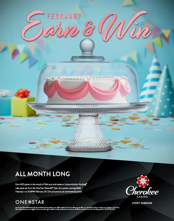 Poster designed for Cherokee Casino Fort Gibson’s Earn & Win Event.