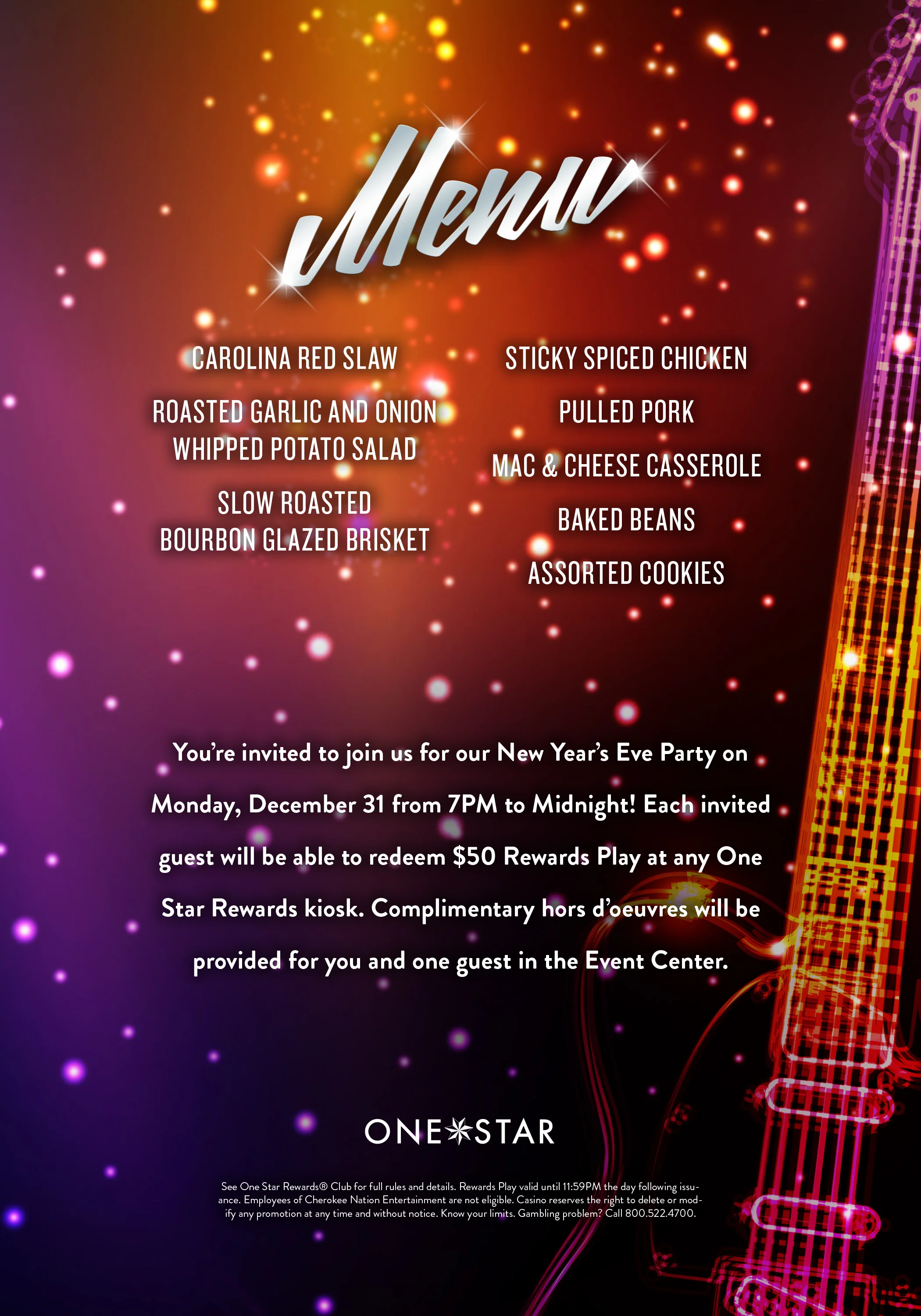 Invitation designed for Cherokee Casino Grove’s New Year’s Event.