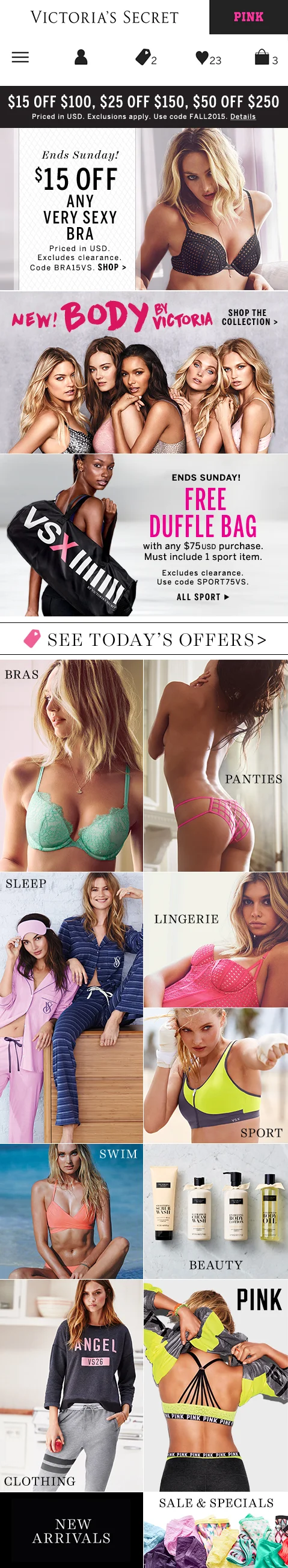 Home and landing pages designed for the Victoria's Secret 2015 Fall Fashion site.