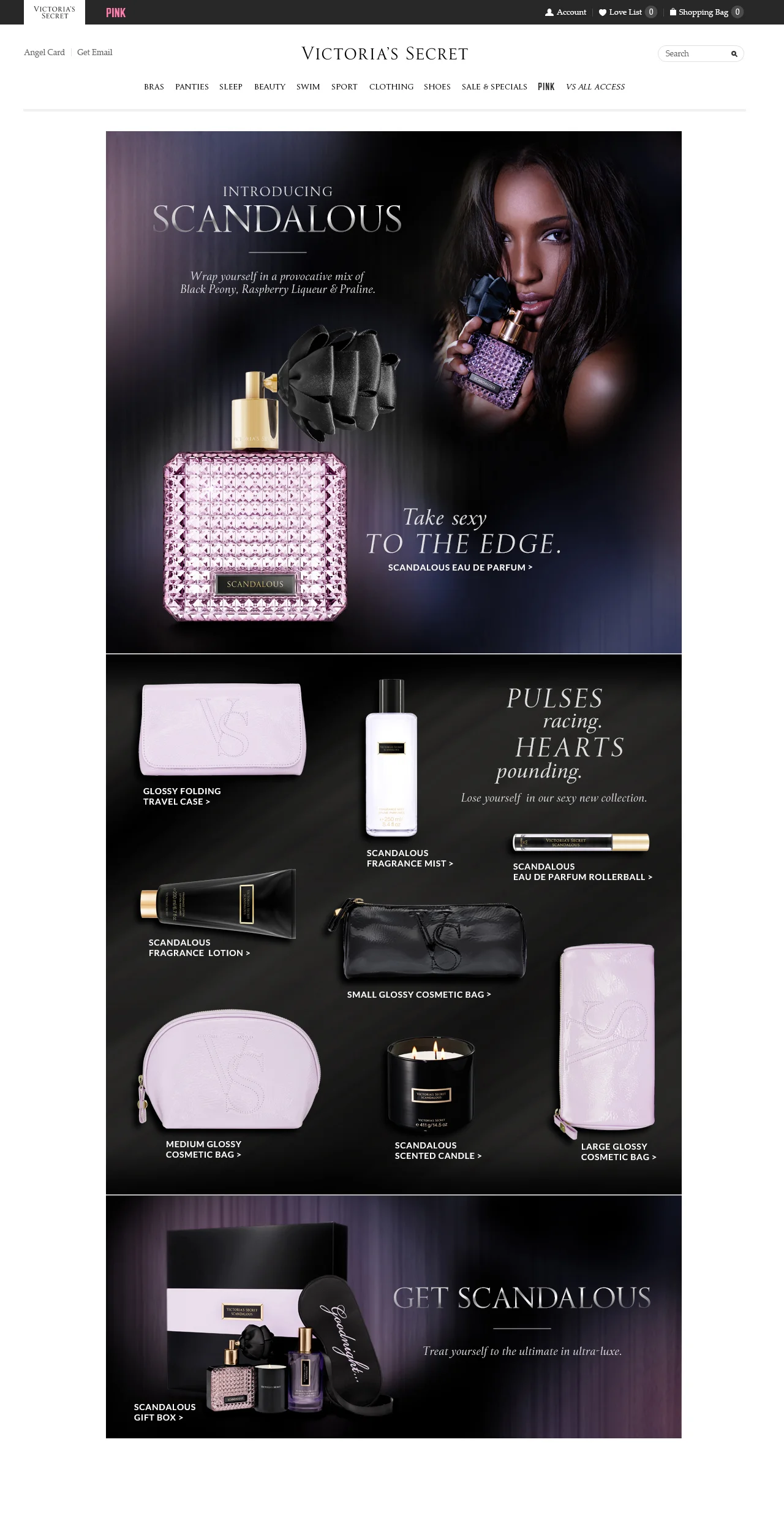 Editorial feature designed for Victoria’s Secret Scandalous fragrance launch.